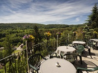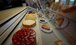 Im gemütlichen Café, an das sich eine Terrasse mit Panoramablick anschliesst, kann man sich von der freundlichen Bedienung die Köstlichkeiten servieren lassen, die das Haus zu bieten hat.
